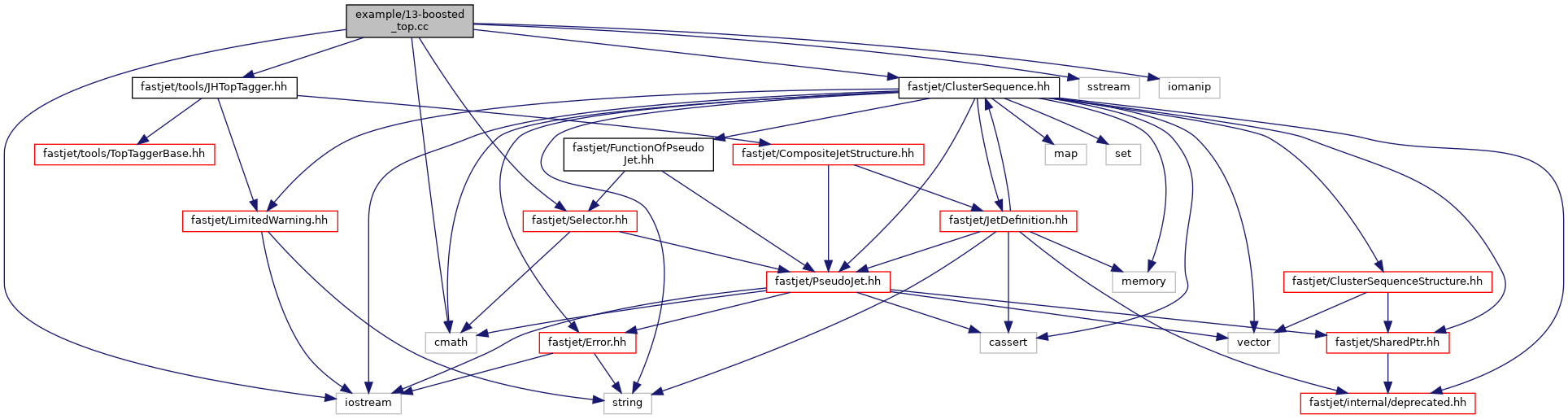 #include <iostream>#include <sstream>#include <iomanip>#include <cmath>#include <fastjet/ClusterSequence.hh>#include <fastjet/Selector.hh>#include <fastjet/tools/JHTopTagger.hh>